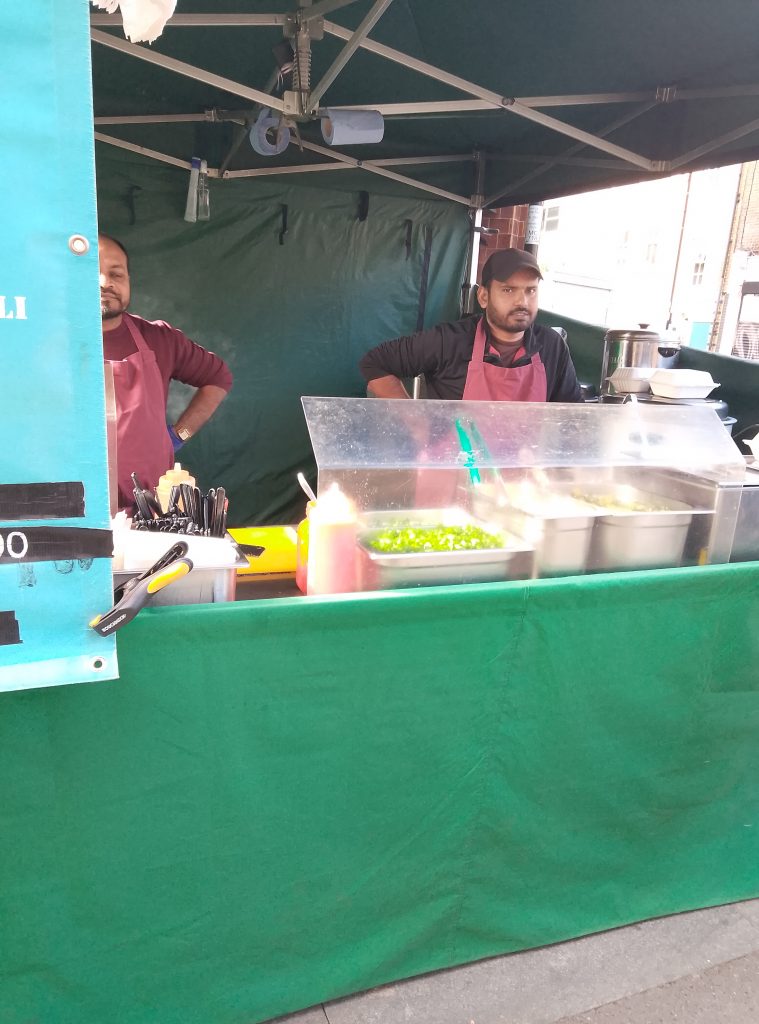 We caught the attention of Hasib and Raj, on their Japanese speciality unit, Katsu. Their main dish is a Japanese dish of meat or seafood coated in breadcrumbs then deep fried. They, unlike some of the others, bring the unit in each day and drive it away in the afternoon, and have been trading there for around ten years.