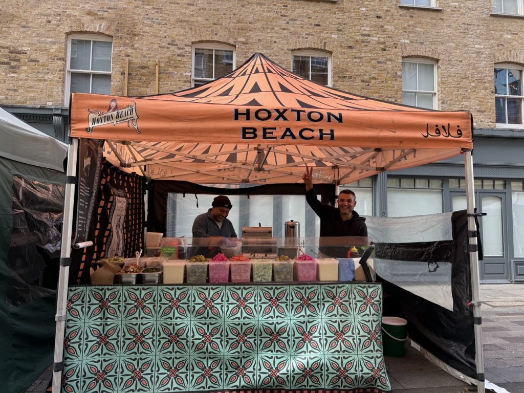 Wissam runs a Middle Eastern cuisine stall, specialising in pickles and snacks, under the name Hoxton Beach. His preparations begin at 11:30 am. Before the pandemic, Fridays were his busiest day, but that’s no longer the case. Now, the stall operates at normal capacity only two or three days a week, with Wednesday being the busiest day, as many customers work remotely on Mondays and Fridays.